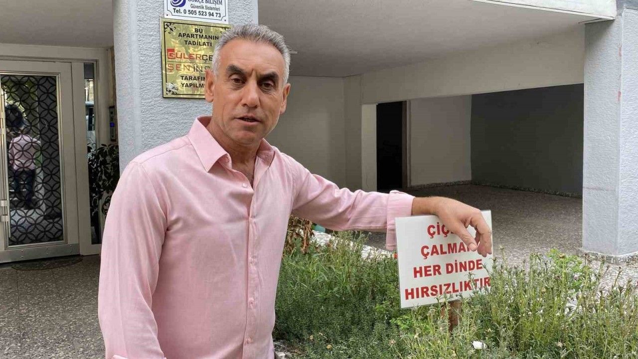 Kırmızıtoprak Mahallesi Taşköprü Caddesi üzerinde bulunan Stad Apartmanı’nın bahçesinden iddiaya göre sürekli çiçekler çalınıyor. Apartman yöneticisi Aydın Kesikbaş, kasalarla ektiği çiçeklerin sökülerek götürülmesine bir türlü çözüm üretemediğini söyledi. Bu durumla ilgili farkındalık oluşturmak isteyen Kesikbaş, "Çiçek çalmak her dinde hırsızlıktır" yazılı bir uyarıyı bahçeye yerleştirdi. Çevreden geçenlerini dikkatini çeken uyarı sayesinde çiçek hırsızlığı olayları azaldı. Bahçeye verdikleri emeğe saygı gösterilmesini isteyen Kesikbaş, hırsızlık yapmak yerine kapısını çalan vatandaşlara çiçek verebileceğini ifade etti.