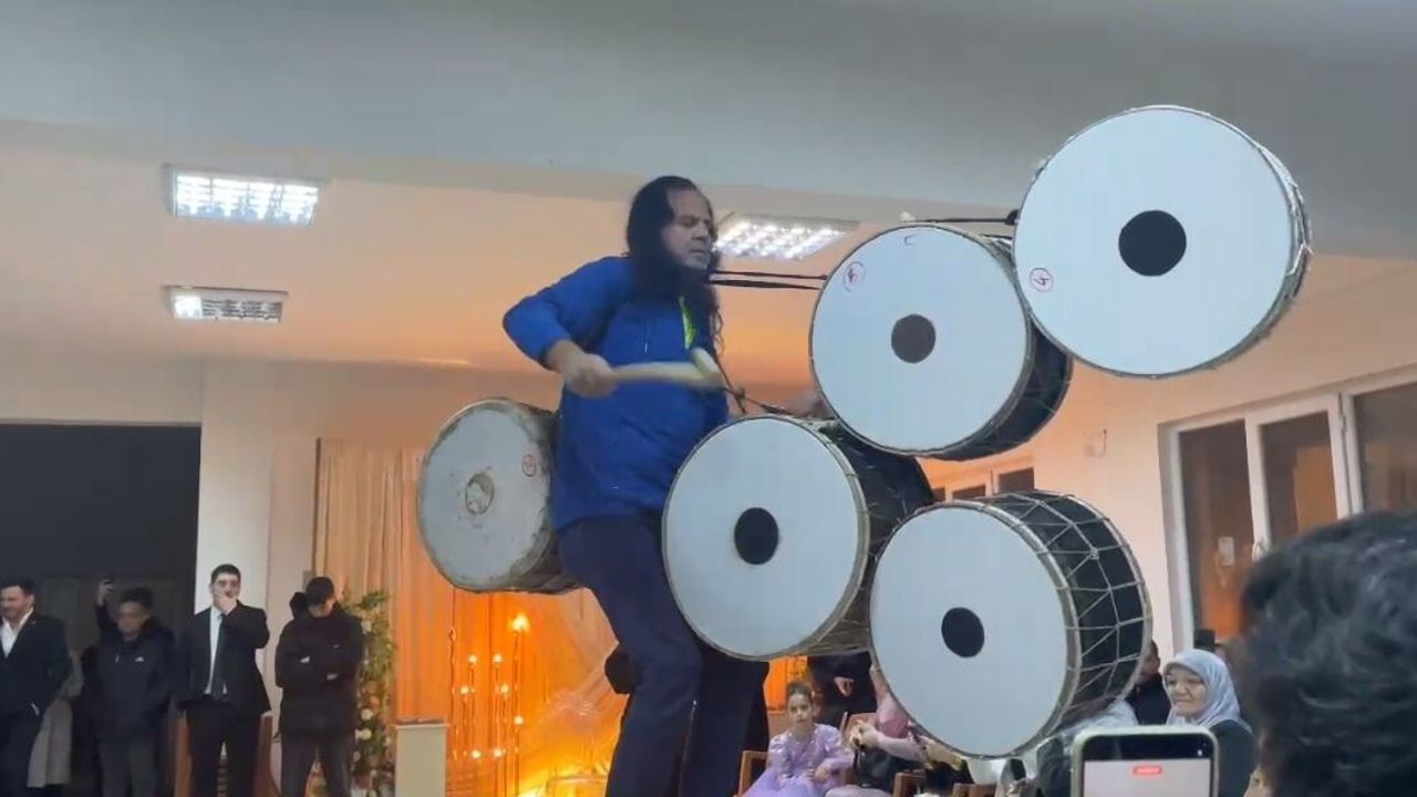 Kendisinin dünyada ve Türkiye’de aynı anda 7 davul çalan tek kişi olduğunu ifade eden Karagöz, sergilediği şovla düğün davetlilerinden büyük alkış aldı. Ritim ve enerjinin zirveye çıktığı anlarda vatandaşlar cep telefonlarına sarılarak o anları kaydetti.