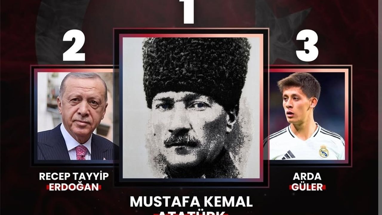 Paylaşılan listeye göre, Cumhuriyetimizin kurucusu Ulu Önder Mustafa Kemal Atatürk dünyanın en çok tanınan Türk ismi oldu. Atatürk’ü ikinci sırada Cumhurbaşkanı Recep Tayyip Erdoğan, üçüncü sırada ise Real Madrid forması giyen milli futbolcu Arda Güler takip etti.