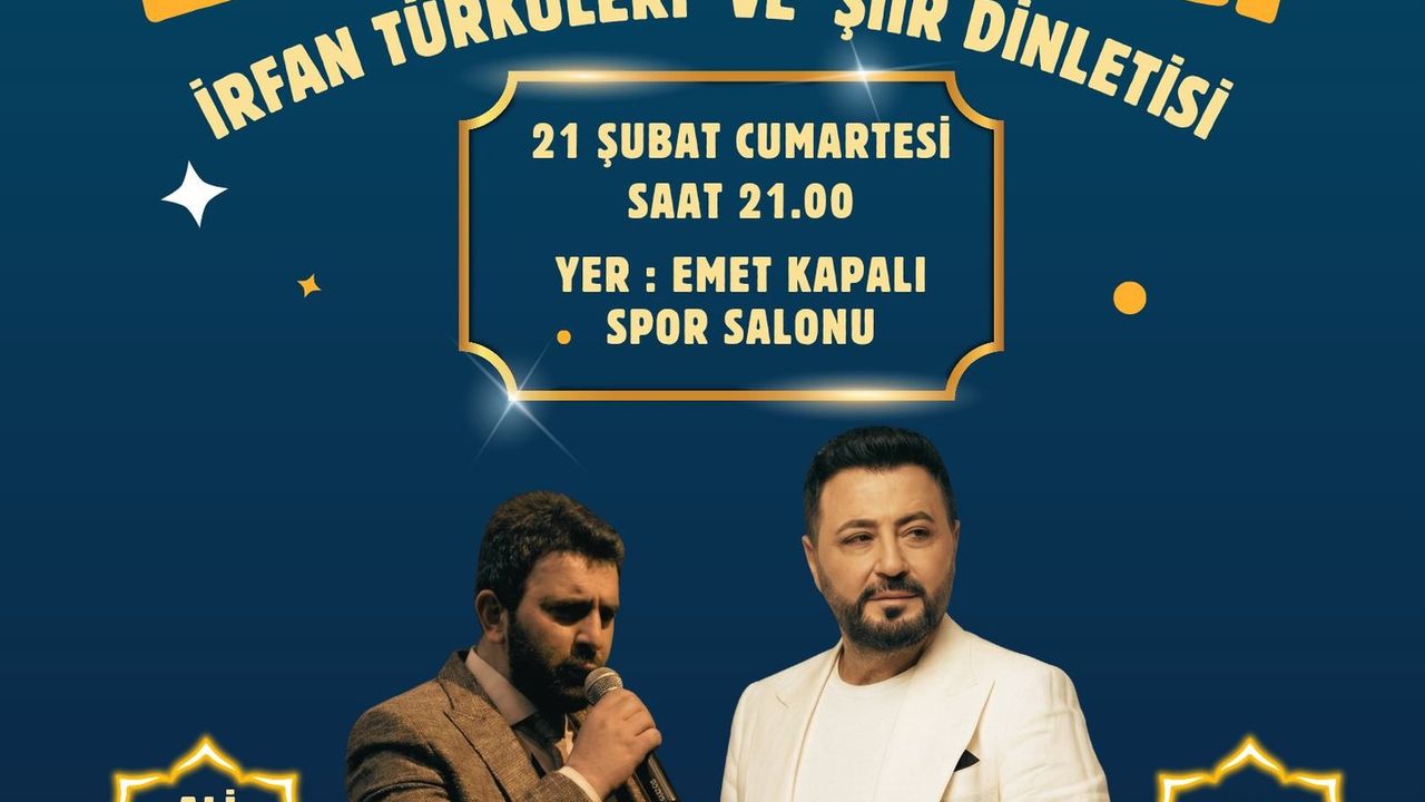 Etkinlik, Emet Kaymakamlığı ile Emet Belediyesi öncülüğünde, sponsorların katkılarıyla gerçekleştirilecek. Gecede iki önemli isim sanatseverlerle buluşacak. Şair Ali Öztürk, seslendireceği şiirlerle Ramazan’ın derin anlam dünyasını dinleyicilere aktaracak. Tasavvuf ve irfan geleneğinin izlerini taşıyan eserler ise sanatçı Candaş Gümüş’ün yorumuyla sahneye taşınacak. Şiir dinletileri ile tasavvuf ve irfan türküleri, aynı atmosferde buluşarak katılımcılara duygu dolu anlar yaşatacak.