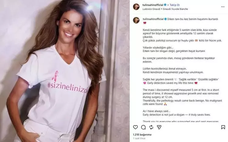 Meme kanseri farkındalığı için yürütülen Pembe Kurdele (Pink Ribbon) hareketinin Türkiye’deki önemli temsilcilerinden olan Şahin, paylaşımında erken tanının önemine bir kez daha dikkat çekti.
