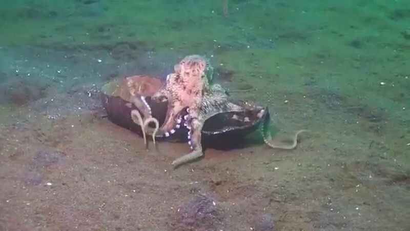 Görüntüsü ile insanları hayran bırakan ahtapotlar, deniz kabuklarıyla süsleme yapabildikleri gibi taşları ise evi için kapı görevinde kullanabiliyor.