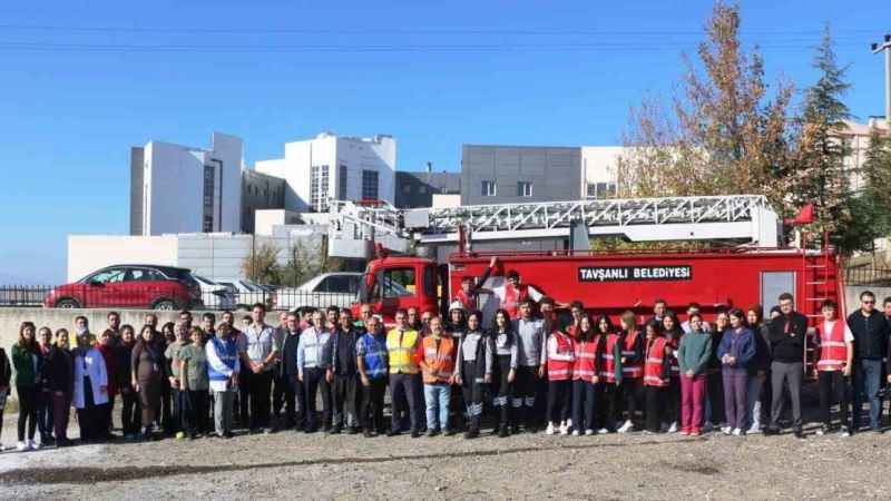 Tavşanlı'da Doç. Dr. Mustafa Kalemli Devlet Hastanesi ve Tavşanlı Hayme Ana Mesleki ve Teknik Anadolu Lisesi öğrencileri ile yangın tatbikatı yapıldı.