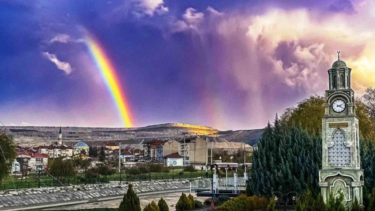 Yağmur sonrası ortaya çıkan renkli manzara, vatandaşların büyük ilgisini çekti. Saat Kulesi ile gökkuşağının buluştuğu o anlar, görenleri hayran bıraktı. Bu eşsiz doğa olayını cep telefonuyla görüntüleyen Veteriner Hekim Ali Var, sosyal medyada paylaştı. Paylaşımlar kısa sürede büyük beğeni topladı.