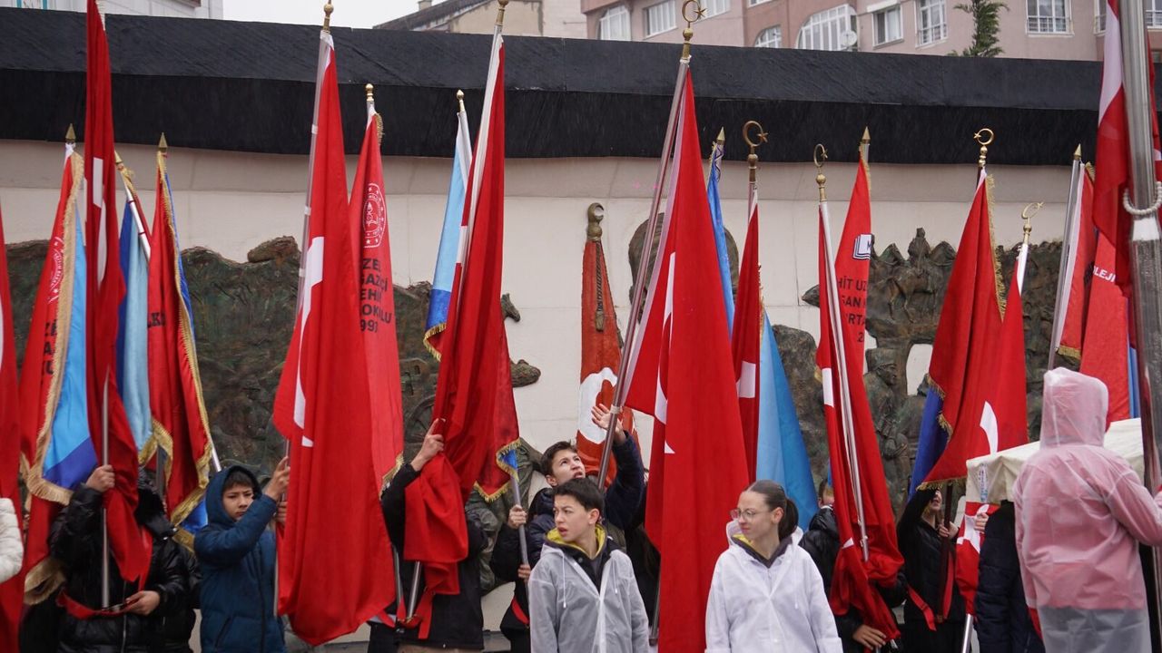 Tören alanında toplanan öğrenciler, ellerindeki Türk bayraklarıyla bayram coşkusunu adeta görsel şölene dönüştürdü.