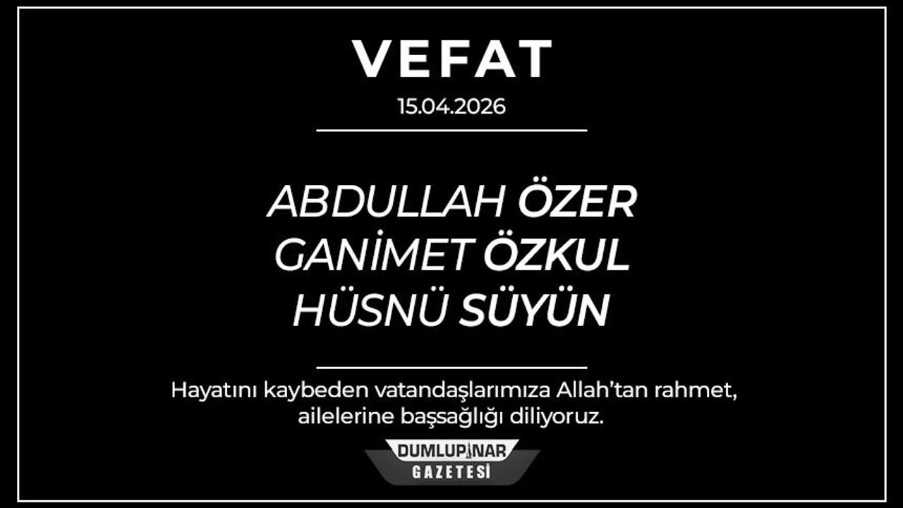 Kütahya’da 15 Nisan 2026 Çarşamba günü yayımlanan vefat ilanları, kentte derin üzüntü yarattı. Aynı gün içerisinde üç vatandaşın hayatını kaybettiği duyurulurken, cenaze programlarının gün içinde farklı camilerde gerçekleştirileceği bildirildi.
