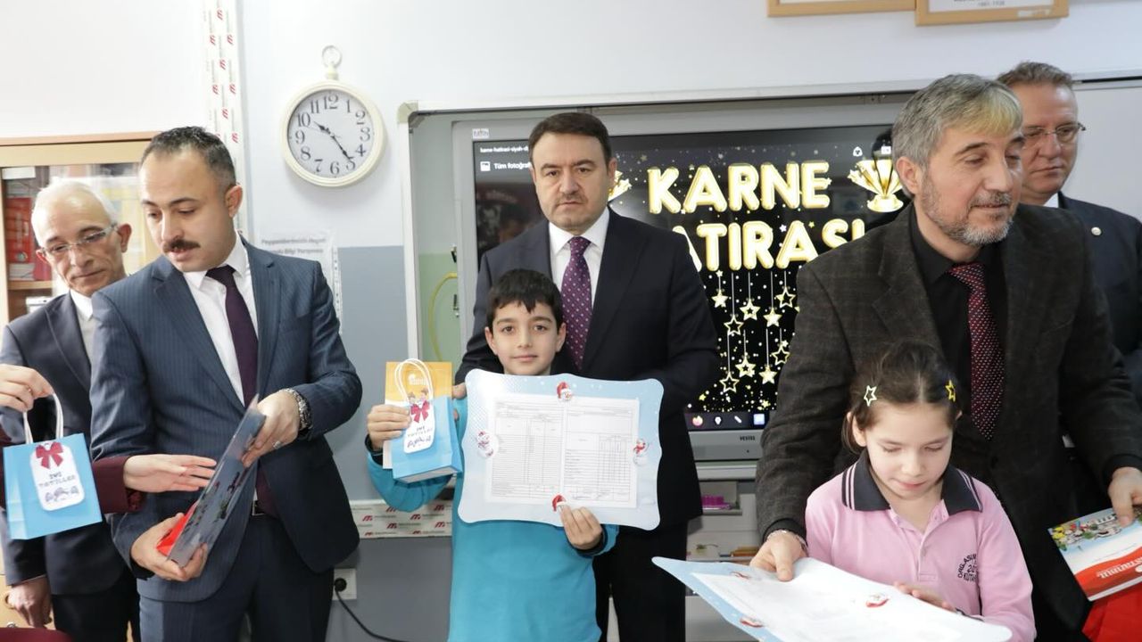 “Eğitimde yöntemler de en az binalar kadar kıymetlidir. Bugün karne dağıtımında gördüğümüz ilgi ve yaklaşım, eğitimin insan odaklı bir anlayışla yürütüldüğünü göstermektedir.” dedi.
