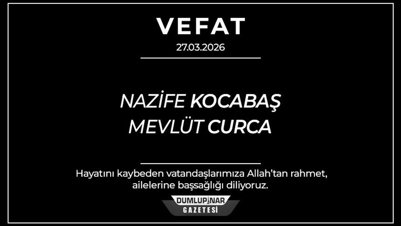 Kütahya Belediyesi tarafından yayımlanan 27 Mart 2026 tarihli vefat listesine göre kentte iki vatandaş hayatını kaybetti. Belediyenin resmi internet sitesinde yer alan bilgilere göre, cenaze programları da kamuoyuyla paylaşıldı.