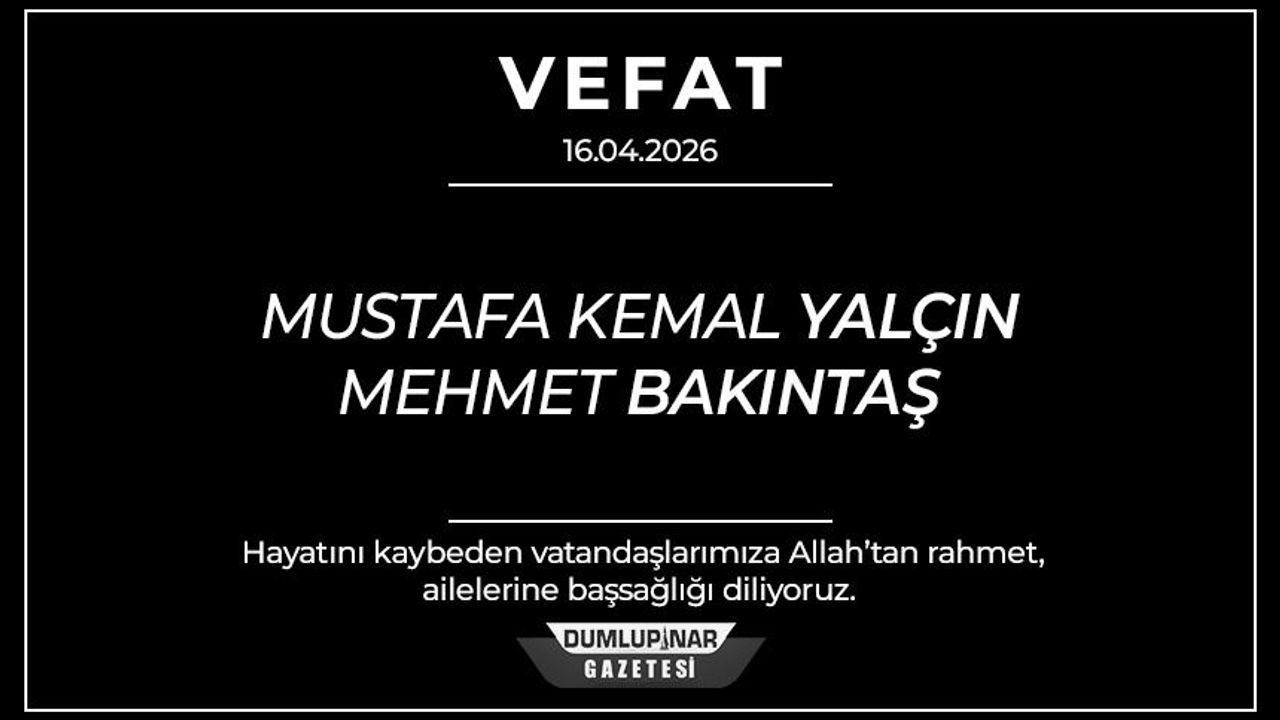 Kütahya’da 16 Nisan 2026 tarihinde Mustafa Kemal Yalçın ve Mehmet Bakintaş hayatını kaybetti. Vefat haberleri kentte üzüntüye neden oldu.