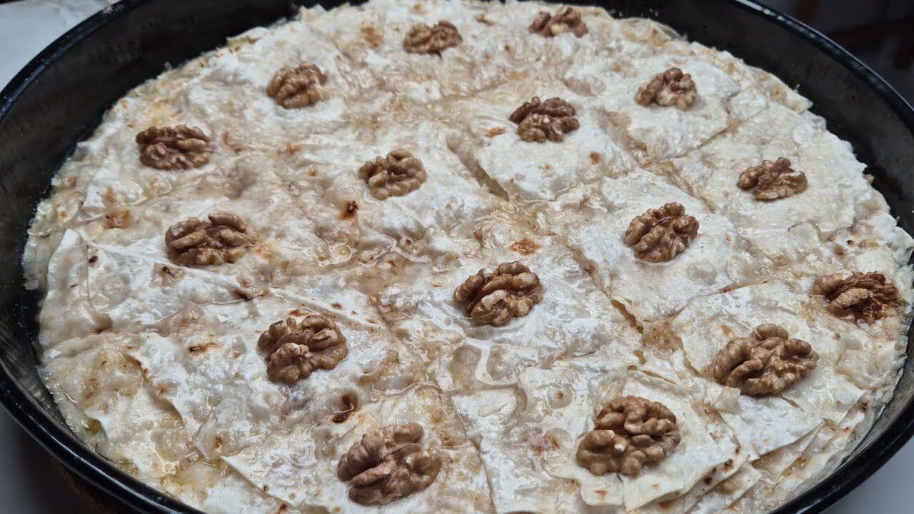 Yapılışı: İncecik açılan yufkaların arasına bol ceviz veya fındık içi serpilerek üst üste diziliyor. Fırında nar gibi kızardıktan sonra üzerine soğuk şerbet dökülüyor.