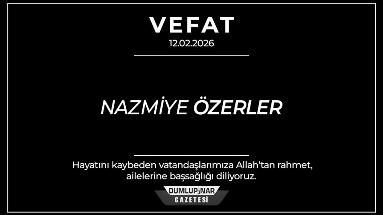 Merhum lokantacı Abdullah Özerler’in eşi, Semiha Hüner ve Hatice Yüksel’in anneleri, Rıfat Hüner ve Mustafa Yüksel’in kayınvalideleri Nazmiye Özerler vefat etmiştir.