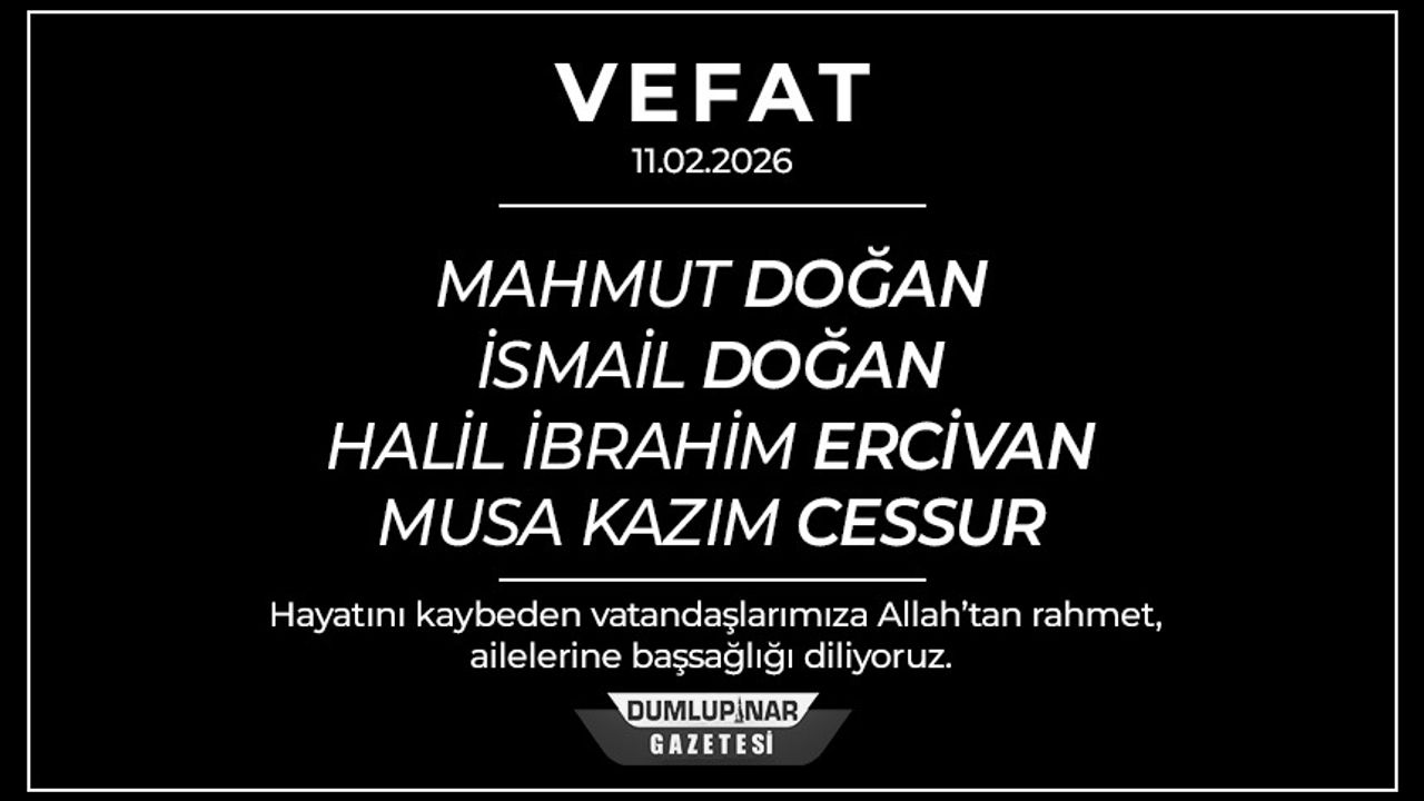 Vefat eden merhumlara Allah’tan rahmet; aileleri, yakınları ve sevenlerine başsağlığı ve sabır diliyoruz.