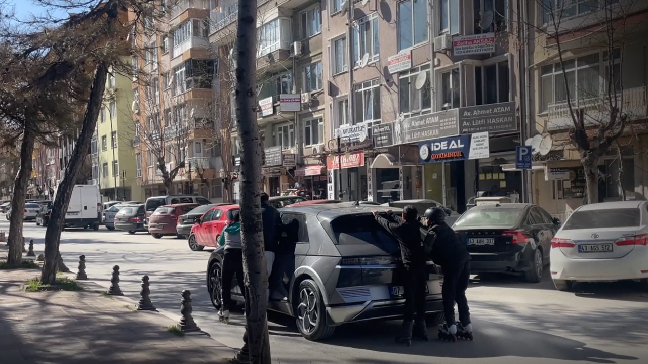 Yoğun şehir içi trafiğinde yaşanan olayda, patenli çocukların otomobile tutunarak ilerlemesi hem sürücüler hem de çevredeki vatandaşlar tarafından şaşkınlıkla izlendi.